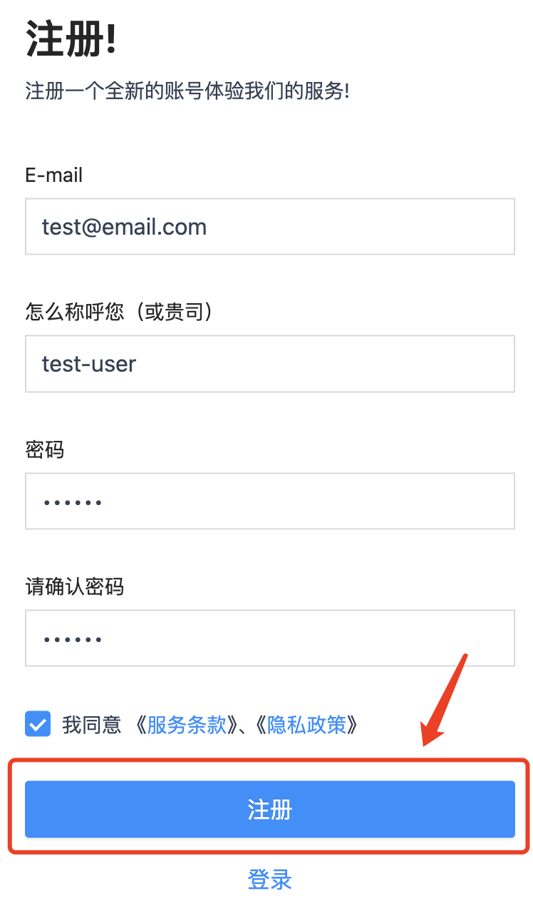 在注册界面,我们需要填写一些信息,包括用户名,邮箱,密码。